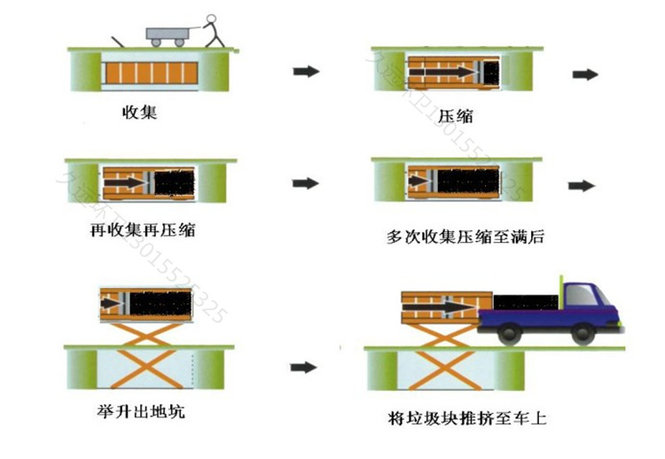 水平式生活垃圾壓縮中轉(zhuǎn)設(shè)備是將垃圾的卸(出)料、壓縮、儲存集合在一起,整體落于地下,利用地下空間將垃圾密閉在箱體內(nèi),地面上無垃圾外露現(xiàn)象,壓縮垃圾產(chǎn)生的污水經(jīng)排污管道直接流入污水井內(nèi),然后由污水泵排到城市污水管網(wǎng),徹底解決了垃圾在收集、儲存、裝運(yùn)過程中的污染環(huán)境、作業(yè)效率低等問題。整個設(shè)計(jì)僅有上蓋板露出地面,上蓋板可與周圍環(huán)境協(xié)調(diào)裝飾,達(dá)到融為一體的效果,使城市面貌更加美觀。